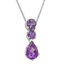 2.0 Carats Amethyst Sterling Silver Three-Stone Pendant With 18" Box Chain